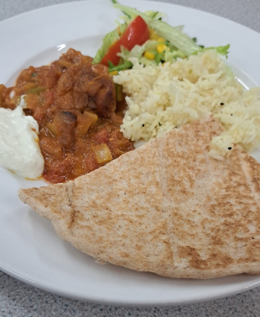 Tonight, there was a choice of Chicken or Vegetable Curry served with Rice, Naan Bread, and Salad, which was served to 91 friends... lots of new and old faces.